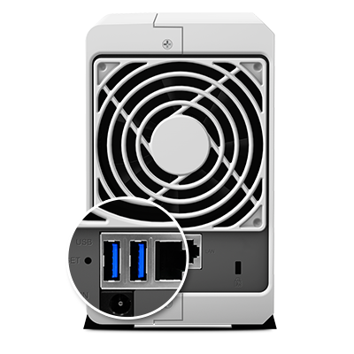 DS216j 配備 USB 3.0 埠,讓你能夠連接不同的外接儲存裝置,同時擁有快速、高效的文件傳輸效率。透過支持 USB 3.0 接口,其提供較前一代快 10 倍的傳輸速度,不僅使外接硬盤的數(shù)據傳輸更為順暢,也可降低耗電量。