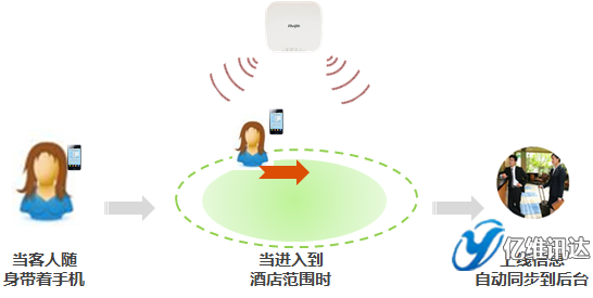 銳捷認(rèn)證系統(tǒng)提供標(biāo)準(zhǔn)的接口,可以將客人的上線信息自動同步到酒店的后臺,后臺可通知門童、前臺、大堂經(jīng)理,某某客人來了。