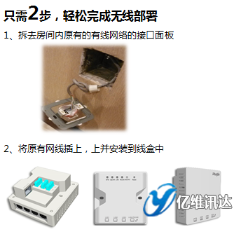 銳捷墻面式 AP,86面板盒大小,只需要替換掉原有的網(wǎng)絡(luò)接口面板,不打洞、不施工,不需要停止?fàn)I業(yè)。