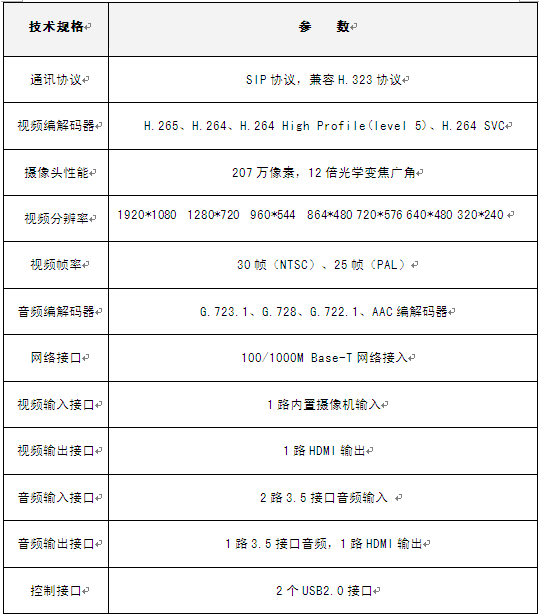 產(chǎn)品特性:內(nèi)置高清視頻會(huì)議終端+12倍光學(xué)變焦廣角攝像機(jī),安裝部署更簡(jiǎn)單;業(yè)界首推H.265編解碼,降低40%帶寬占用;1080P高清分辨率;支持遙控器操作
