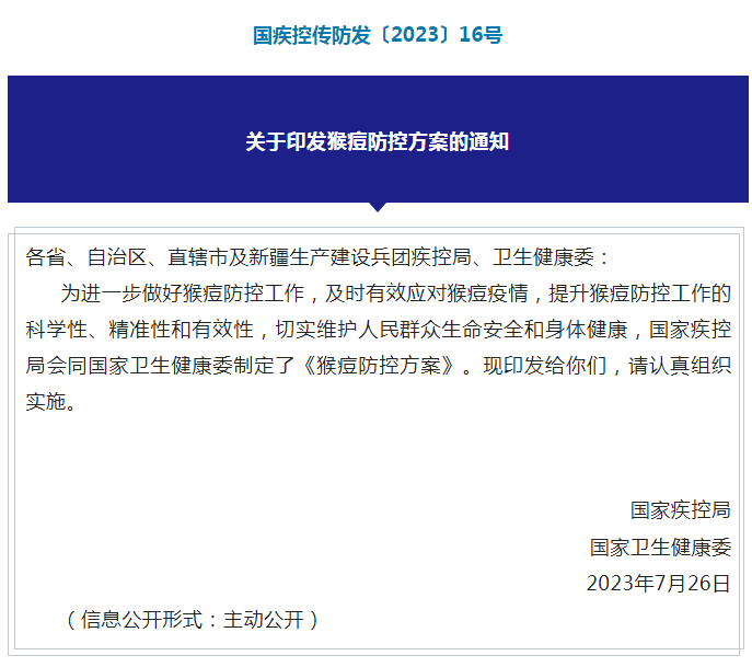 7月末,國家疾控局、國家衛(wèi)生健康委聯(lián)合制定印發(fā)了《猴痘防控方案》,引發(fā)社會關注。